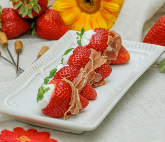 Cortar la baguette en rodajas delgadas y poner sobre la parrilla para tostar suavemente. También se puede usar la baguette fresca, sin calentar.