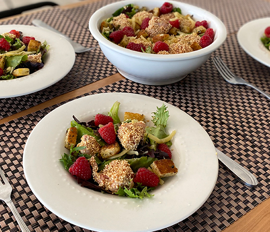Aliñar con aceite de oliva extra virgen, saly pimienta negra recién molida a gusto.