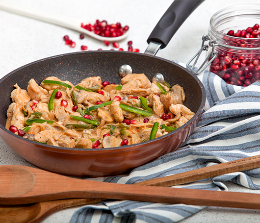 Agregue la mezcla de palta sobre la crema de coco y mezcle hasta combinar bien. Agregue las frutillas y los pistachos.