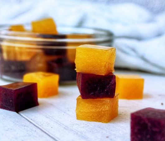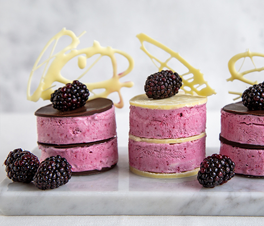 Cut into squares with a knife and melt the chocolate in a bain-marie to decorate with melted chocolate lines.